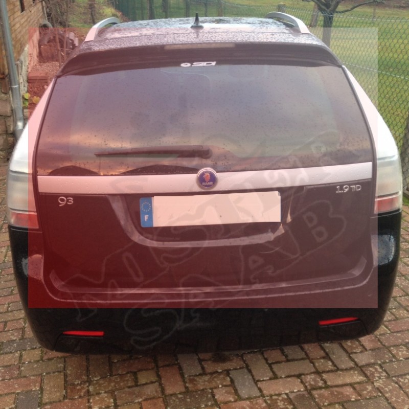 Hayon complet couleur noire avec armature haute, vitre et emblème pour Saab 9.3v2 de 2005 à 2011.